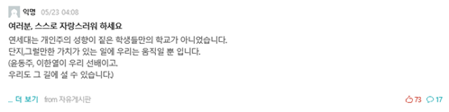 연세대 에브리타임 게시물 중에서 / 2018.5.23 게시된 글