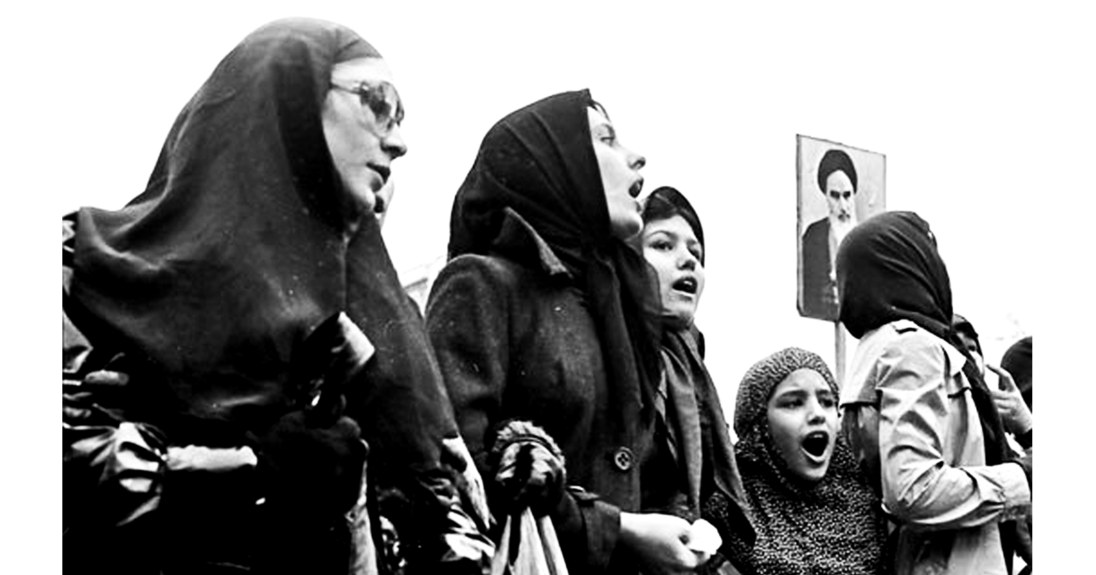 사진 2 – 이란혁명 당시 시위 맨 앞에서 베일을 쓴 여성들의 모습/ (사진출처)