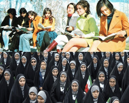 사진 1 – 이란혁명 전후 이란 여성의 모습이라고 많이 알려져 있는 사진/ (사진출처)