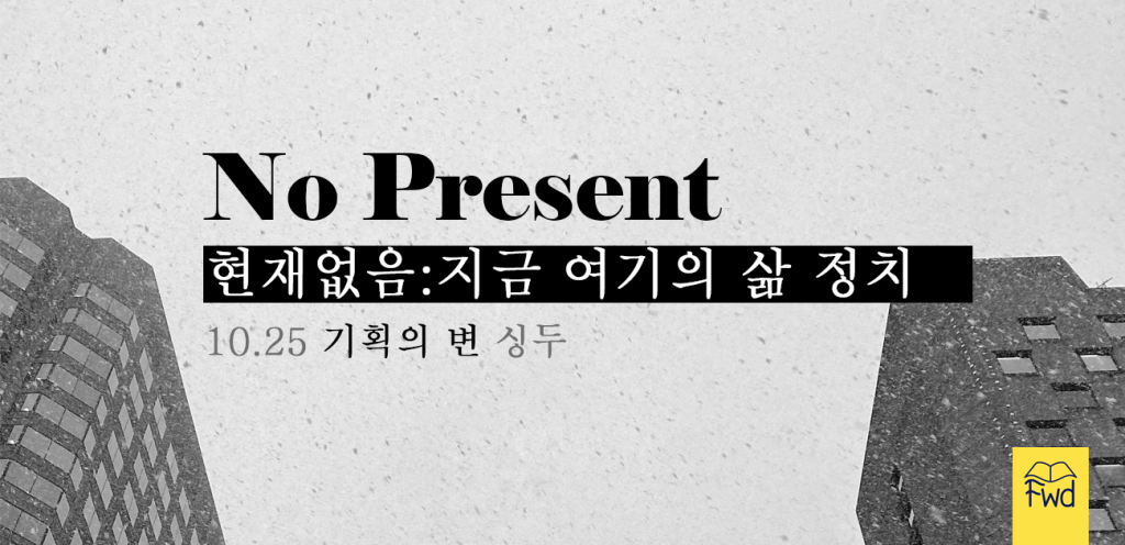 Fwd 8호 기획의 여덟 필진은 이러한 딜레마 자체와 그를 둘러싼 지금, 여기에 더욱 주목해보기로 했다. 국가가 기획한 관계망 바깥의 관계와 존재들은 미래가 없다고 쉽게 가정되거나, 미래의 성장, 희망, 삶과 연결되지 못하는 현재의 소멸, 부정성, 죽음을 내포할 수밖에 없는 것일까? ‘미래 없음’의 관계가 곧 ‘현재 없음’의 관계이기도 하다면, 그 구체적인 이유와 맥락은 무엇인가? ‘현재 없음’에서 시작되는 역설적인 삶의 가능성은 무엇일까? 위와 같은 질문을 바탕으로 각자의 지금, 여기를 둘러싼 현실의 삶 정치가 소환되었다.
