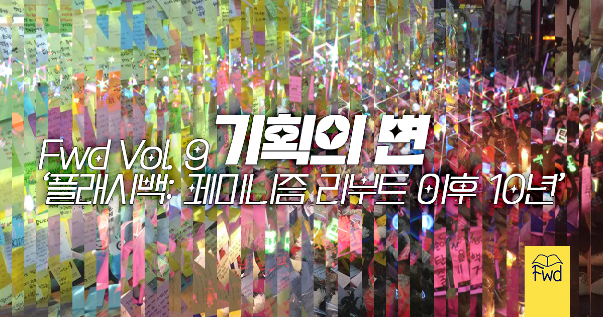 이러한 공통 감각 하에 Fwd의 필진들은 페미니즘 리부트의 10주년을 기념하고 기록하는 아홉 번째 기획의 제목을 ‘플래시백’으로 명명했다. ‘리부트’가 영화 산업의 용어인 것처럼, ‘플래시백’ 역시 영화적 표현으로서 우리의 집단적 기억이 시간을 초월해 연결되는, 과거의 경험이 예기치 않은 순간에 현재의 경험 위로 중첩되며 흐르는 순간을 포착한다. 이 과거와 현재를 잇는 중첩된 시간성에서 핵심적 매개체 역할을 하는 것은 다름 아닌 감정 혹은 정동이다. 필진들은 2015년 페미니즘 리부트 이후 지난 10년간 전개된 다양한 논쟁들과 액티비즘, 최근 탄핵 정국의 응원봉 연대를 비롯하여 페미니즘 운동이 마주한 현 상황이 공포, 분노, 망설임, 혼란, 경이로움, 즐거움 등 다양한 감정의 스펙트럼을 통해 더 풍부하게 이해될 수 있다는 데 의견을 함께했다. 감정은 과거와 현재를 연결하는 플래시백의 순간을 포착하고, 그 의미를 전달하는 매개체 역할을 한다. 감정은 모호하고 복잡한 경험들이 끈적이며 달라붙었다 떨어지는 과정을 거쳐 의미를 생산하고, 그 결과 시간순으로 질서정연하게 나열된 서사 속에서는 이해될 수 없었던 것들에 대한 실마리를 제공해 준다. 페미니즘 리부트 시기 운동의 언어가 어떻게 구성되었는지, 그 언어가 구성원들을 어떤 방식으로 움직이게 했는지, 그리고 그것이 현재까지 어떤 형태로 이어지고 있는지를 감정과 정동의 렌즈를 통해 살펴봄으로써, 우리는 비로소 ‘페미니즘 리부트’의 의미에 더 가까이 다가갈 수 있다.