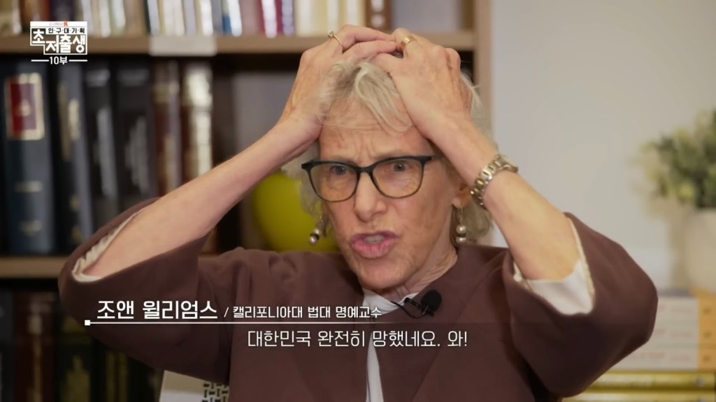 이러한 전략은 ‘헬조선’ 담론에서 이미 구체화된 바 있다. 2010년대 중반부터 청년 세대를 중심으로 확산된 이 용어는 한국 사회의 살인적인 입시 경쟁, 불안정한 고용 상태, 천문학적인 주택 가격, 사회경제적 양극화 등을 비판하는 자조적인 표현으로 사용되었다. 한국 페미니스트들은 이러한 헬조선 담론에 성차별과 젠더폭력의 요소를 강조하며, 한국 사회의 가부장적 구조를 비판하는 데 활용했다. 최근에는 캘리포니아대 샌프란시스코 법학대학원 명예교수이자 노동 분야의 ‘세계적 석학’인 조앤 윌리엄스가 한국의 초저출생률을 듣고 머리를 감싸쥐며 “대한민국 완전히 망했네요. 와!(Korea is so screwed. Wow!)”라고 말한 자막이 담긴 방송 장면이 밈이 되어 자주 사용되고 있다. 백인 여성 학자의 얼굴과 반응을 대한민국의 상황을 자조하거나 비판하는 데 활용하는 이 현상은, 후식민 상황에서 여전히 민족국가의 ‘내부식민지’ 상황에 놓인 소수자 집단이 자국의 문제를 해결하기 위해 서구의 권위와 시선을 차용하는 복잡한 역학을 보여준다.[1]