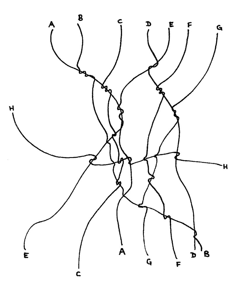 잉골드(2024a)는 이 선들이 얽혀 만드는 매듭을 “조응(Correspondence)”이라고 부르며, 선으로서의 삶은 조응의 과정이라고 제시한다. 이를 잉골드(2024b) 가 제시한 선의 그림으로 쉽게 나타내면 다음과 같다.